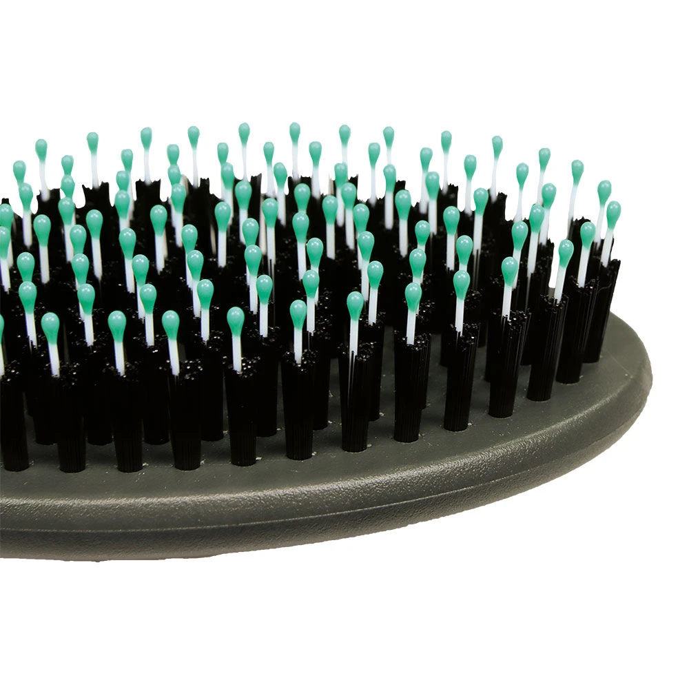 Een tweevoudige, huidvriendelijke verzorgingsborstel die zelfs geschikt is voor gevoelige honden met een lange vacht. De borstel verwijdert losse haren met sterke nylon borstelharen, waarvan de uiteinden voorzien zijn van zachte, ronde rubberen noppen. Dit garandeert dat de borstelharen niet krassen. Bovendien heeft deze borstel een groot aantal iets kortere, zachtere borstelharen die zorgen voor een perfecte glans van de vacht en een verzorgd uiterlijk.