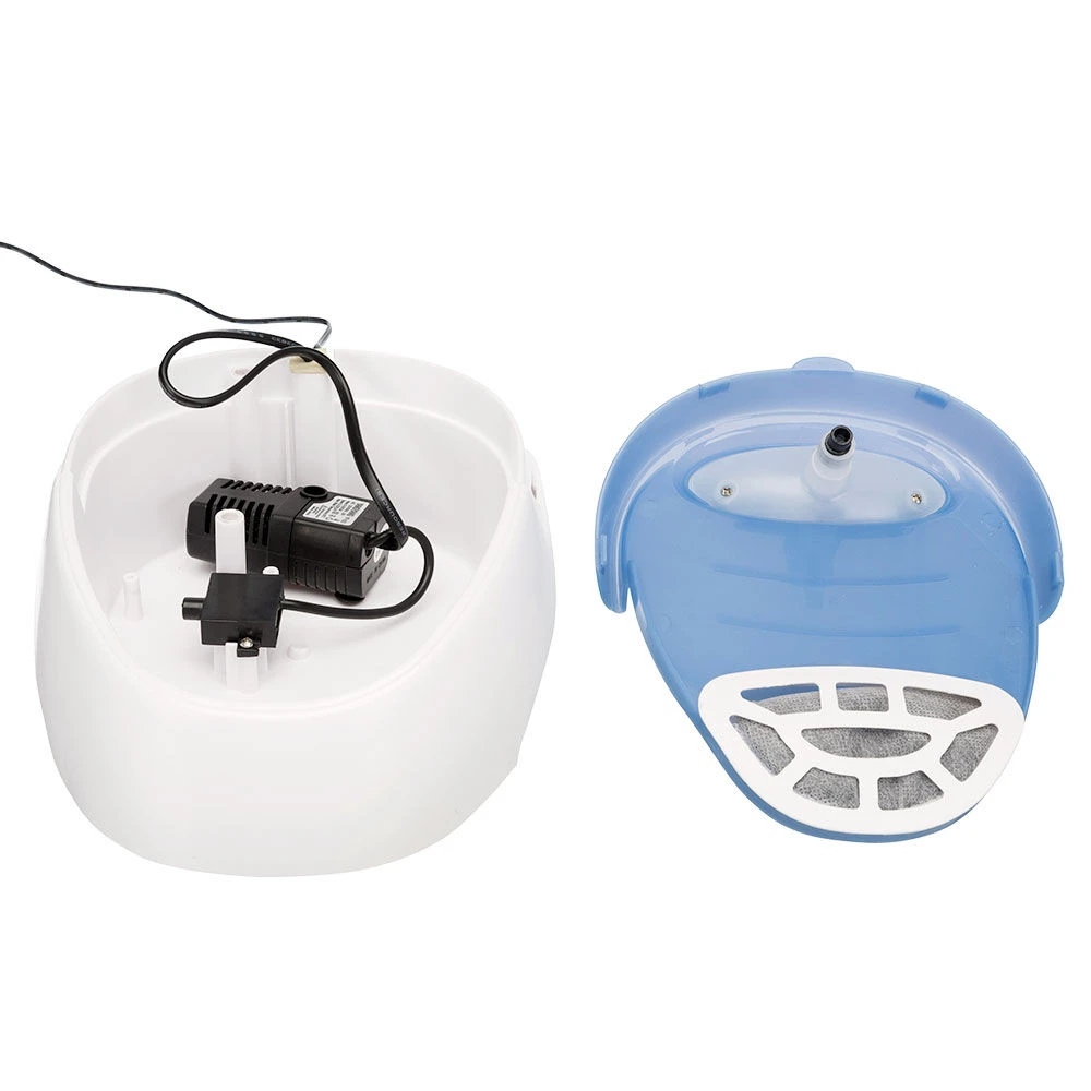 Honden geven de voorkeur aan stromend water, omdat ze denken dat dit verser is. Voor honden die te weinig vocht binnen krijgen wordt het door het kabbelende water bovendien aantrekkelijker om te drinken. De verwisselbare koolfilter zorgt daarnaast voor een optimale waterkwaliteit. Met deze automatische waterdispenser bevordert u de gezondheid en het welzijn van uw hond. Veilige 12 V-stroomvoorziening met trafo en 1,5 m lang snoer. Energiezuinige 2,5 W-pomp.