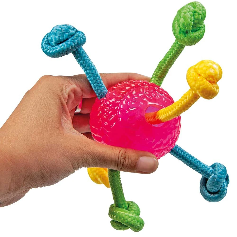 Robuust balspeeltje van slijtvast TPR (Thermo Plastic Rubber) dat blijft drijven. Met 3 doorlopende touwen. Ideaal om rond te slingeren, maar ook om te apporteren! Een speeltje waarvan uw hond heel lang plezier zal hebben.
