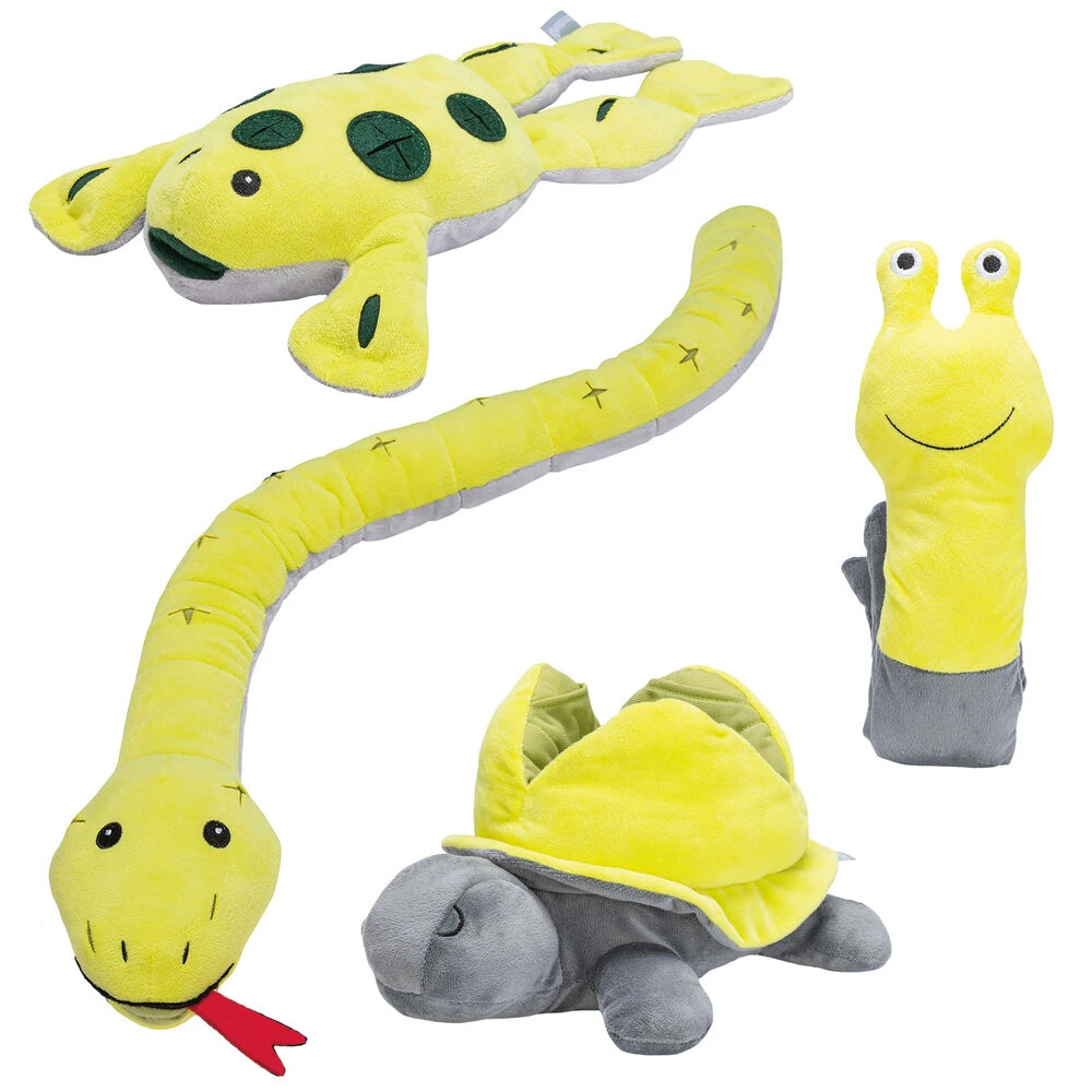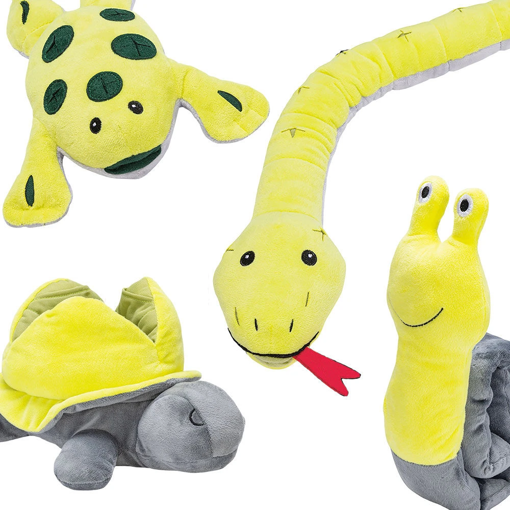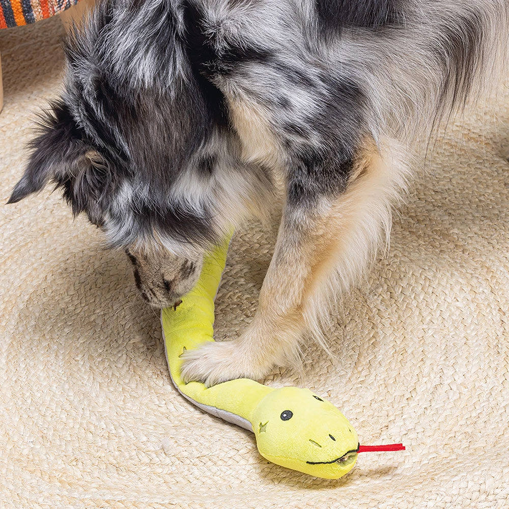 Een zachte stoffen slang met in totaal 21 verstopplekken voor lekkernijen. Voor kleinere lekkernijen zijn er 1 verstopplek in de bek, 2 op de kop en 9 op de rug van de slang. Iets grotere snacks kunnen worden verstopt in de 9 sleuven aan de onderkant. Je pelsneus is dus lang bezig!