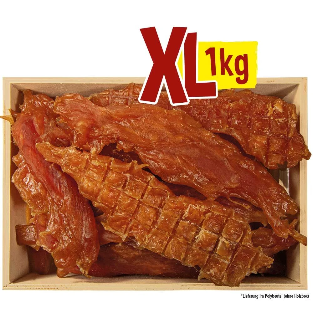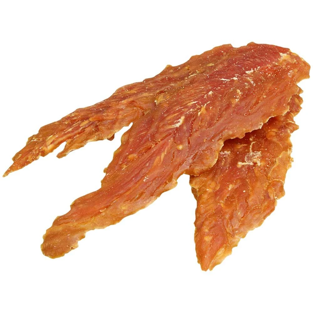 Hele stukken kipfilet, glutenvrij en natuurlijk zonder toegevoegde suikers. Door de toevoeging van bijvoorbeeld aardappel zijn de stukken niet hard gedroogd en brokkelig, maar heerlijk zacht en taai.