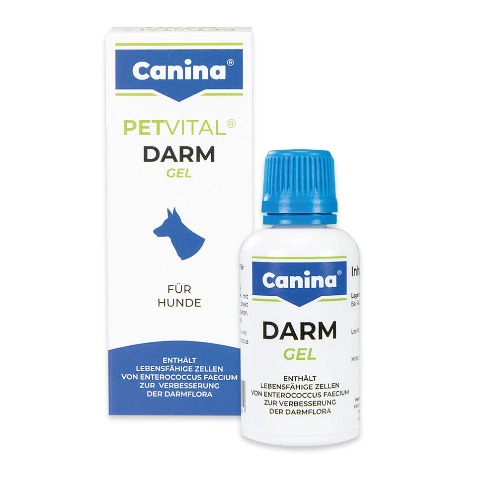 Bij diarree, indigestie en andere irritaties van het maagdarmkanaal (bijv. veroorzaakt door verandering van voer, voerintolerantie, veranderingen in de omgeving, toediening van antibiotica etc.). Darmgel heeft een positieve invloed op de darmflora door het micro-organisme ‘Enterococcus faecium’ dat het bevat, zodat het welzijn van de hond wordt ondersteund. De melkzuurvormende kiem ‘E. faecium’ overleeft de doorgang door de maag ongedeerd en vermenigvuldigt zich snel in de dunne darm. Dankzij de snelle vermenigvuldiging koloniseert de kiem het darmslijmvlies, zodat schadelijke ziektekiemen zich niet meer aan de darmvlokken kunnen hechten en zo worden verdreven. Dit stabiliseert de fysiologische darmflora en verbetert tevens de verteerbaarheid van het voer.