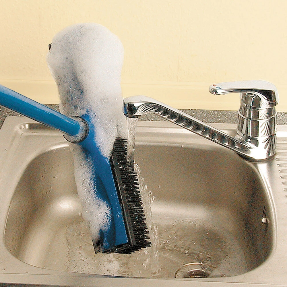 Onze anti-haren-handbezem verwijdert haar en pluizen niet alleen gladde oppervlakken zoals parket, tegels en gladde vaste vloerbedekking, maar ook van bekleding. Deze bezem kan gemakkelijk schoon gemaakt worden: gewoon onder stromend water houden om de haren en draadjes te verwijderen.