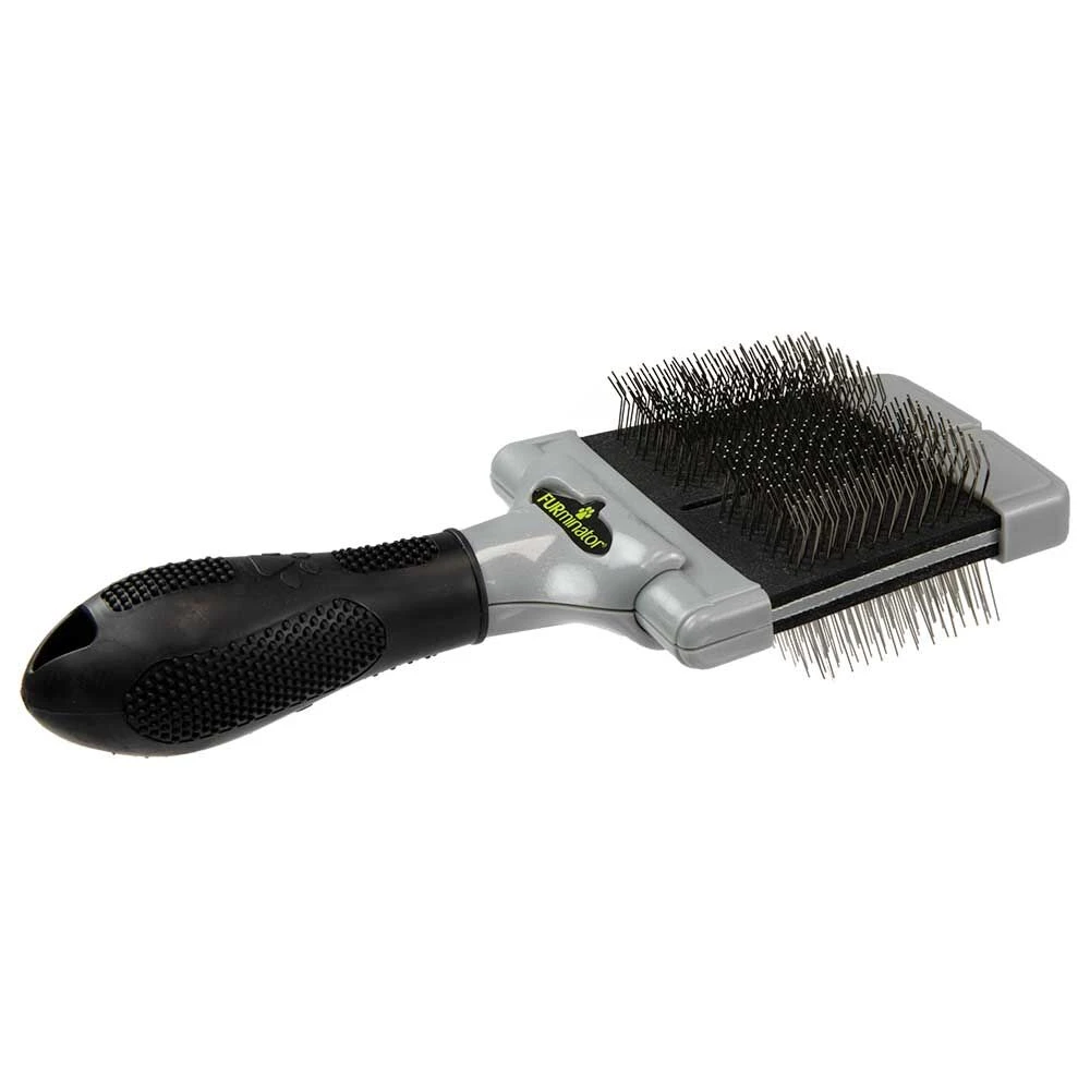 Optimaal voor een middellange tot lange vacht. Voor het voorzichtige verwijderen van klitten en het ontwarren van de vacht. Door de flexibele kop volgt deze borstel de contouren van het lijf van uw hond en voorkomt dat u te hard gaat drukken. Slickerborstels zorgen bovendien voor een natuurlijke glans.