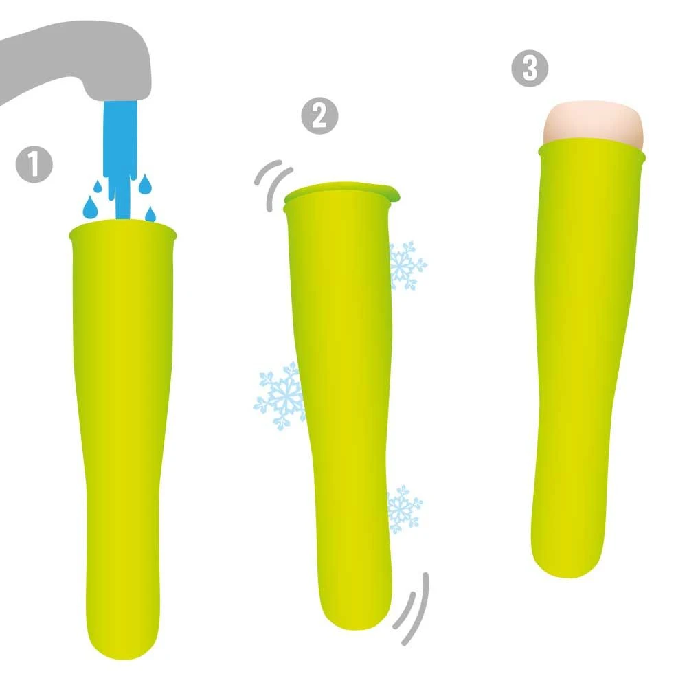 De siliconetube met waterdichte stop bevat al een kant-en-klaar melk-fruit-poedermengsel en hoeft alleen nog maar met leidingwater aangevuld te worden. De hoogwaardige siliconevorm is zeer duurzaam en kan steeds opnieuw met bijv. vleesbouillon, bananenshake, leverworst-watermix of andere receptideeën aangevuld worden. De siliconevorm is vaatwasser- en levensmiddelenbestendig. Met gebruiksaanwijzing.