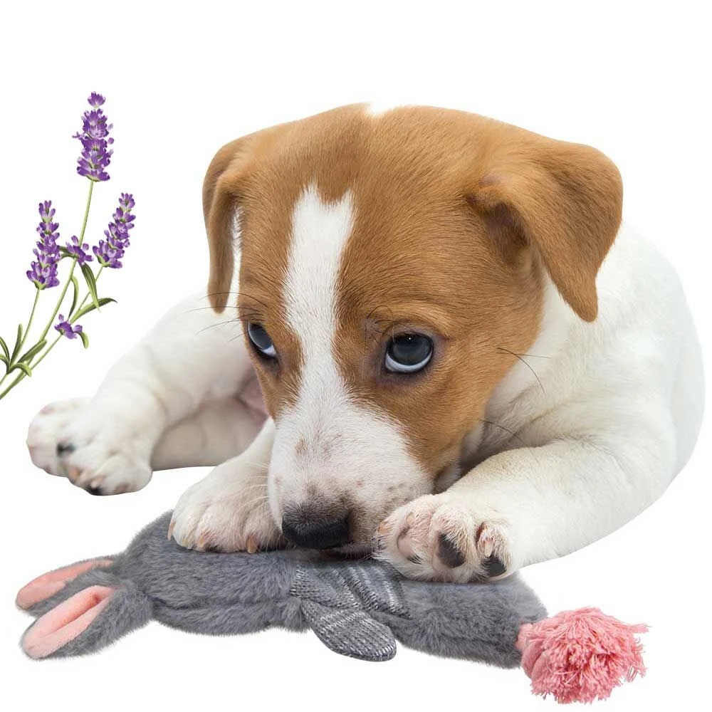 Heerlijk zacht stoffen/pluchen speelgoed voor pups, jonge honden en voor volwassen honden van kleine rassen. Met katoenen touw voor het reinigen van het gebit en knisperfolie aan de binnenkant. De clou: lavendel met geruststellende/kalmerende werking aan de binnenkant. Hondenspeelgoed met lavendelgeur bevordert het evenwicht en kalmeert honden op een natuurlijke manier. Ideaal voor nerveuze honden, bij verandering van locatie, hectische omgevingen, stress of veranderingen. Met pieper en knisperfolie aan de binnenkant.