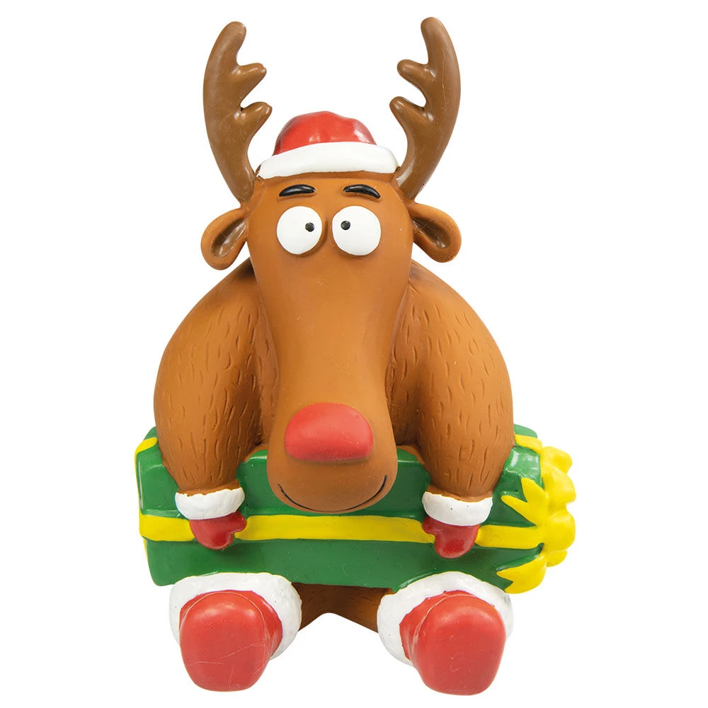 Een grote, zachte eland gemaakt van latexrubber met polyester vezelvulling. Deze vulling geeft de hond meer grip en maakt de eland zeer volumineus. Dit schitterende met de hand beschilderde kerstspeeltje is uitstekend geschikt voor alle middelgrote tot grote honden.