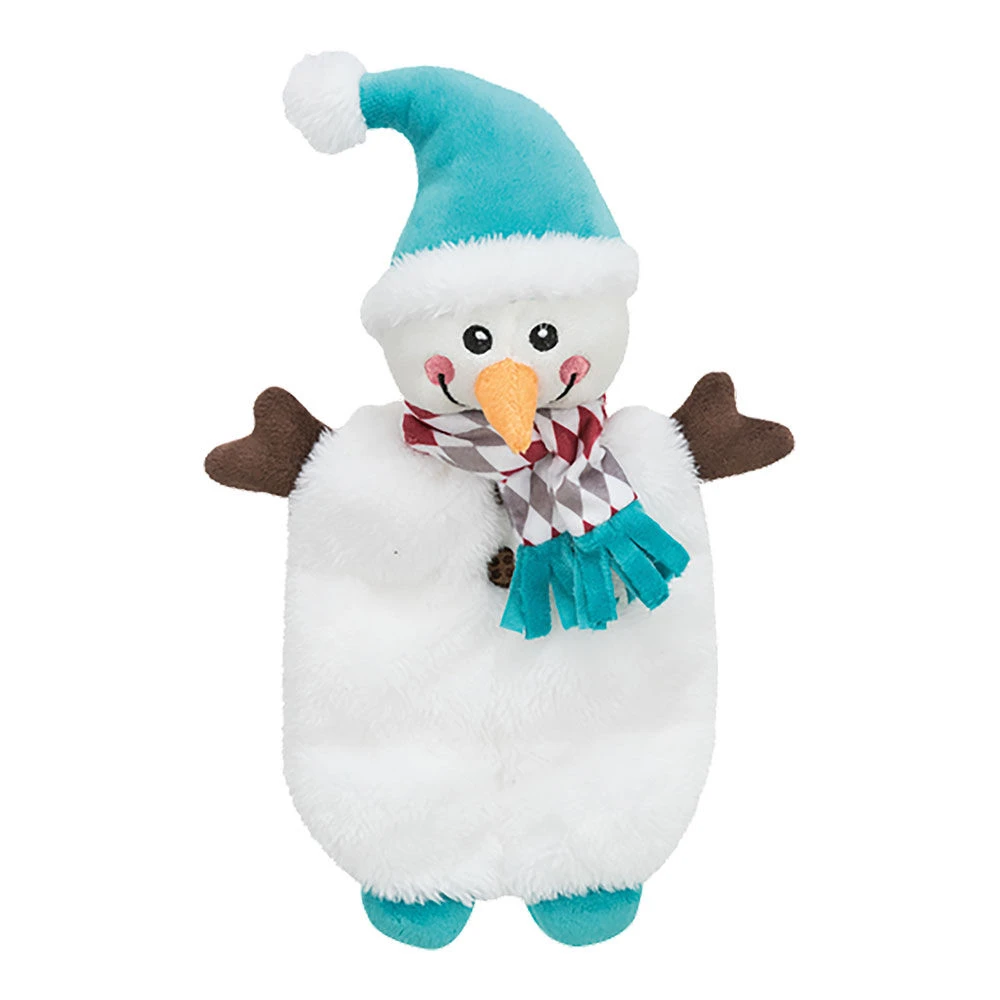Honden houden van de manier waarop speelgoed piept als ze het vastpakken. Met deze platte pluchen sneeuwpop is het veel gemakkelijker om een pieper te activeren en daardoor een gevoel van beloning te krijgen. De sneeuwpop heeft wel 7 piepers binnenin! Dit maakt het spelen voor uw hond nog veel leuker.