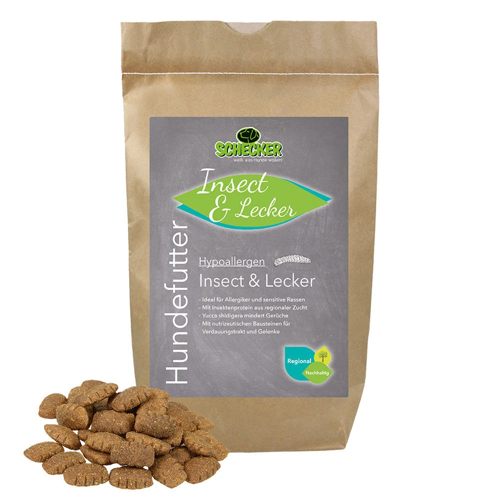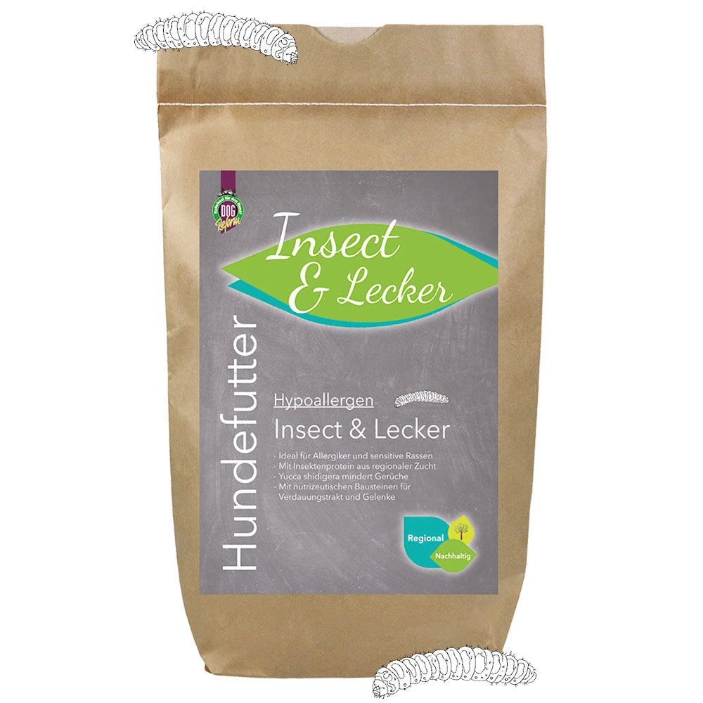 Een volwaardig alternatief hondenvoer zonder vlees en toch met veel extra hoogwaardige eiwitten. Ideaal voor alle gevoelige rassen en allergische honden. Hypoallergeen Insect & Lecker droogvoer is graan- en vleesvrij. Alle belangrijke allergenen zijn dus uitgesloten, de hond kan herstellen zonder jeuk en andere pijnlijke klachten en krijgt gezond voer.