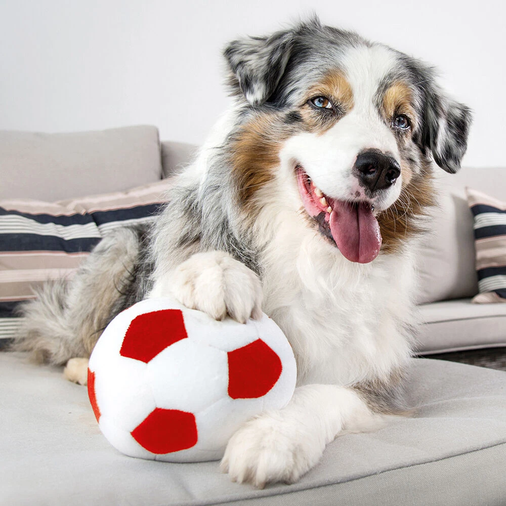 Een echt grote honden-voetbal. Zachte, met hygiënische vulling van polyestervezel.