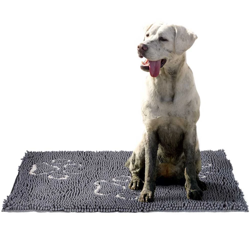- Extra lange chenille-microvezels maken de poten van de hond schoon wanneer deze op de mat stapt