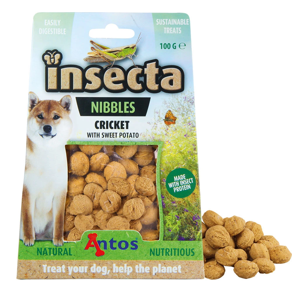 Insecteneiwit is een milieuvriendelijker, duurzamer alternatief voor conventionele snacks. Ook bevelen steeds meer dierenartsen eiwitten uit insecten aan voor honden met voedselintoleranties, huidaandoeningen en een gevoelige maag.