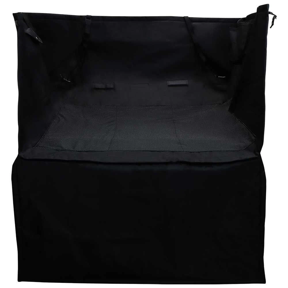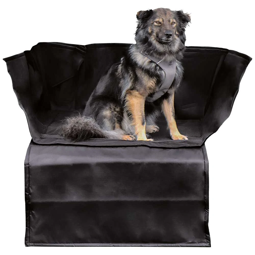 Eindelijk een beschermende deken voor in de kofferbak, die multifunctioneel is en dus niets te wensen over laat. Deze grove, robuuste deken lijkt op een mand, maar is flexibel en ruimtebesparend opvouwbaar en beschermt de bodem en wanden van uw kofferbak. Daarbij vormt de praktische bumperbeschermer opgeklapt een afscheiding die ervoor zorgt dat uw hond niet zomaar uit de auto kan springen. Met klittenbandsluitingen en bandjes zodat de deken naar wens bevestigd kan worden. Het waterbestendige nylonmateriaal kan gewoon met een natte doek afgeveegd worden. Voorzien van speciale openingen voor een hondenautogordel en verschillende vakken voor water, voer en andere benodigdheden. Deze autodeken is gewoon ideaal!