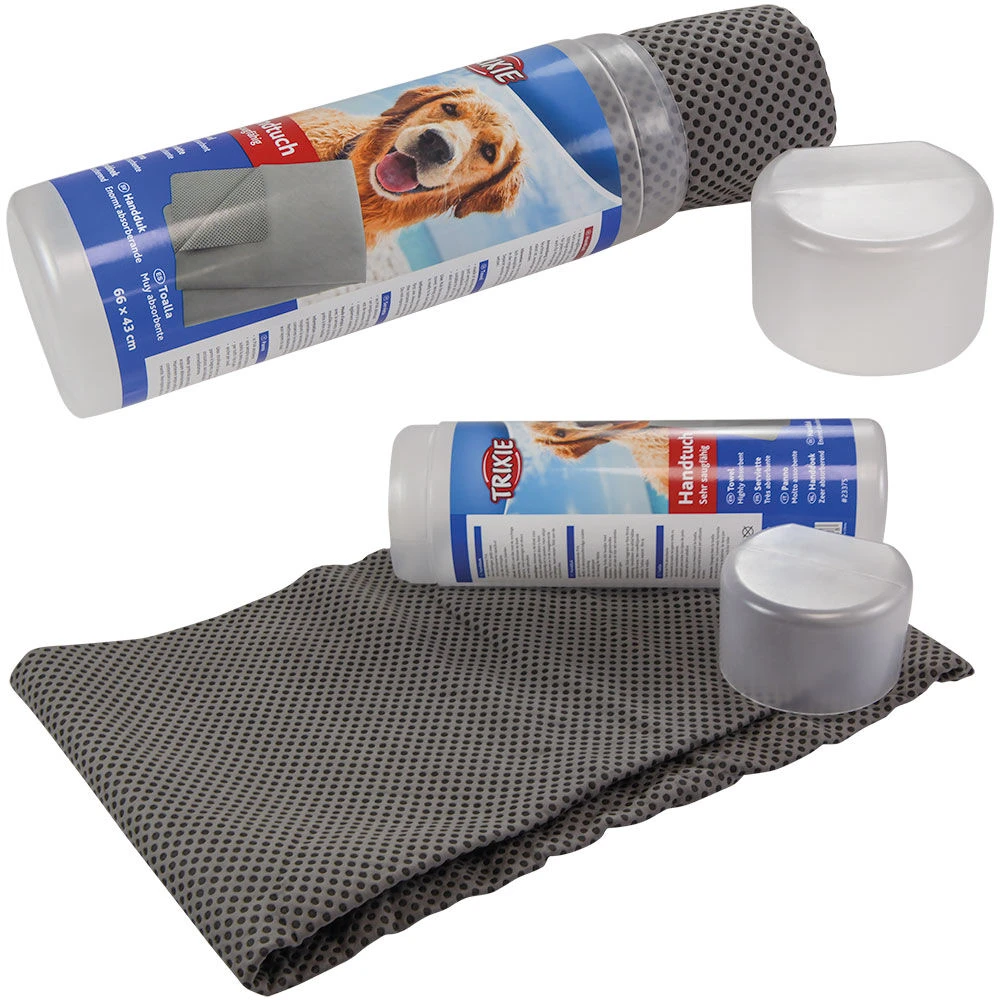 Deze royale handdoek is van extreem absorberend kunststofmateriaal, dat het absorptievermogen van elke stoffen handdoek vele malen overtreft. Nog een beslissend pluspunt van deze grote handdoek: na het uitwringen neemt deze handdoek direct weer vocht op, een voordeel waar elke hondenbezitter blij van wordt.