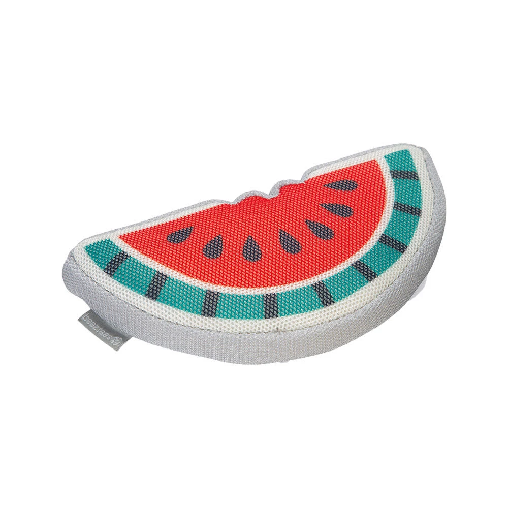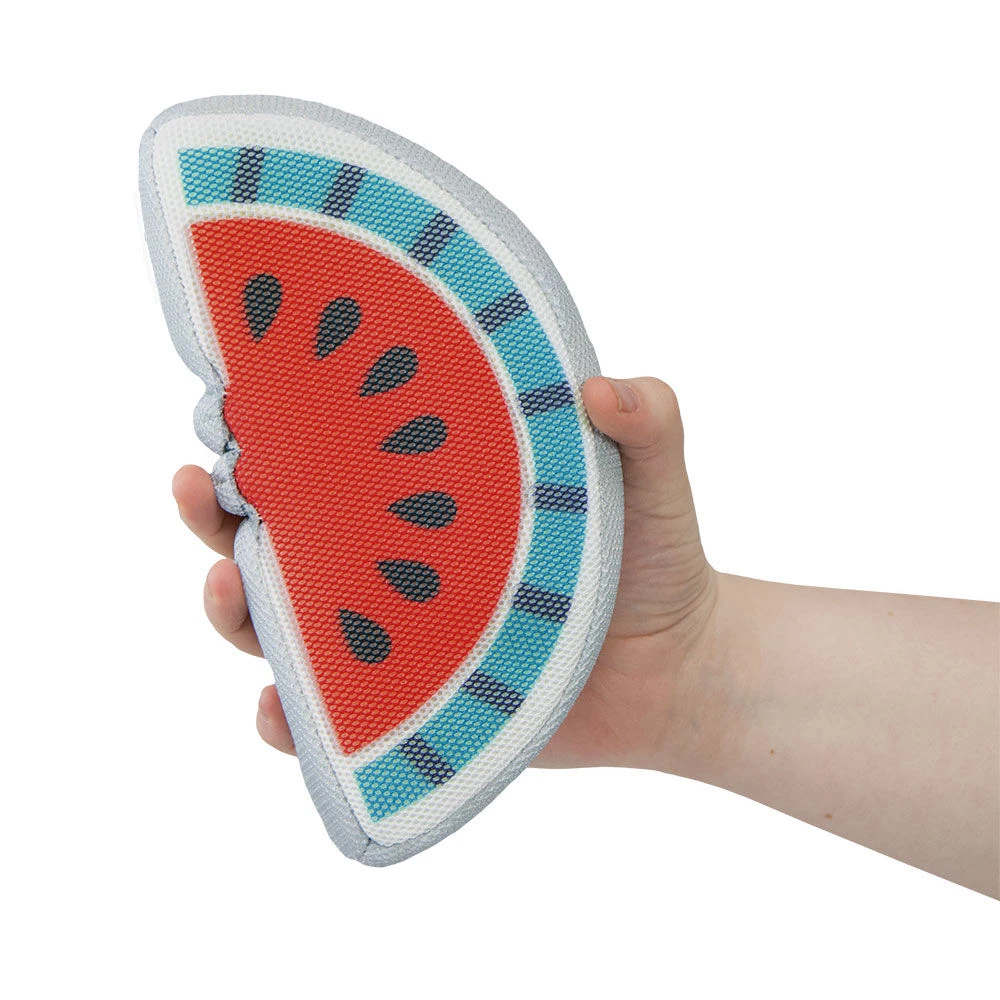 Dit geweldige koelkussen in meloendesign is een welkome afkoeling in de zomer voor uw hond. Bij het spelen in het water zuigt de spons aan de binnenkant zich vol. Vervolgens verfrist het rondspattende water uw hond als hij er mee ravot en eraan trekt. Maar dit koelkussen heeft nog een ander voordeel: als uw hond in het kussen bijt, drinkt hij automatisch vers, koel water.