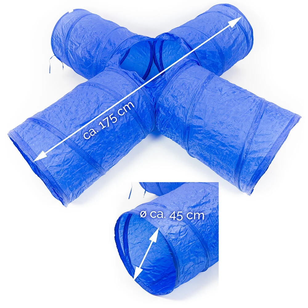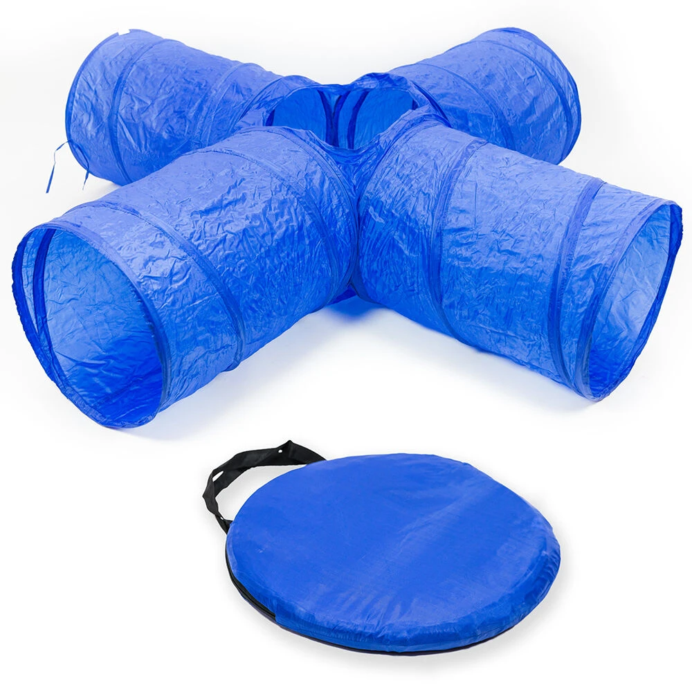 Hoogwaardige, weerbestendige nylon-tunnel voor agility of gewoon om te spelen in de tuin. De grote tunnel wordt klaar voor montage met draagtas geleverd.