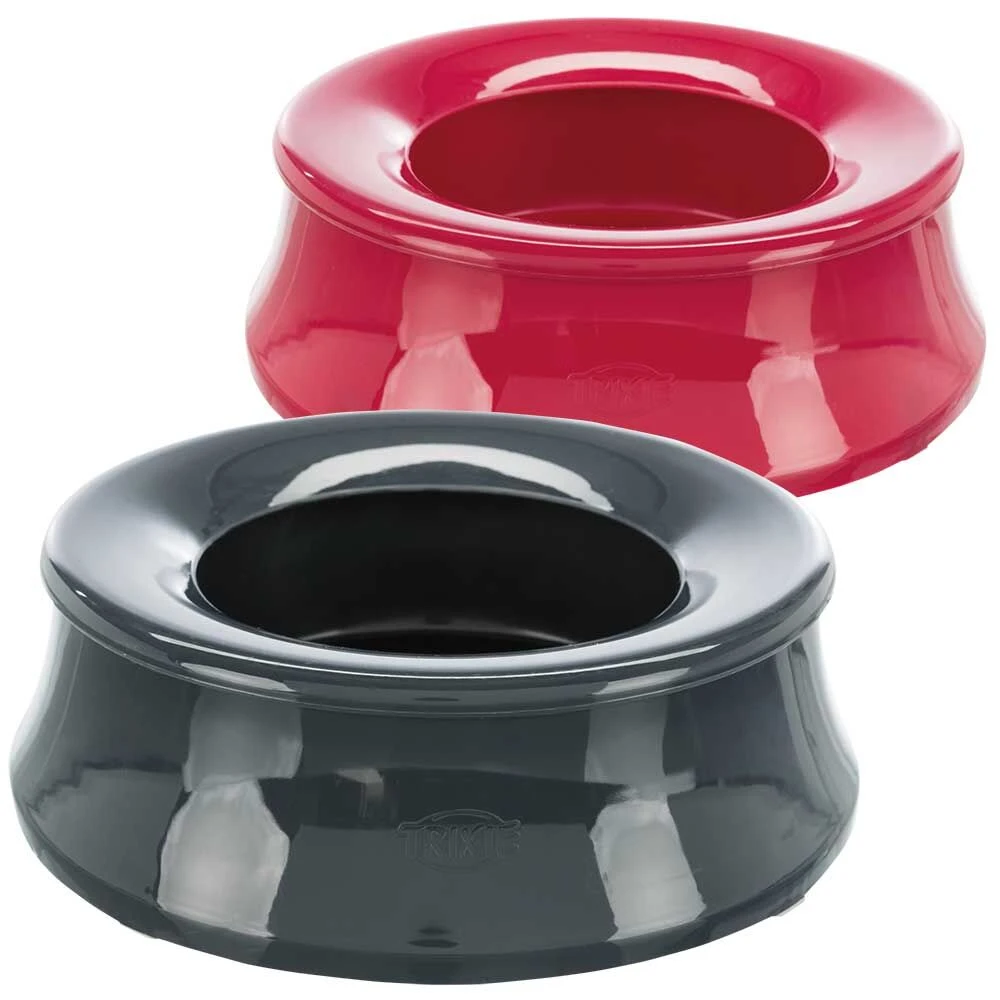 ‘Het is maar water’ wat er bij het drinken iedere keer op de vloer belandt. Maar ergerlijk is het wel, want je hebt er werk mee. En bij gevoelige vloeren als laminaat of gelijmde vloerbedekking, of onderweg in de auto, zou het al beter zijn, als het morsen uit de bak vermeden kon worden. En inderdaad, met deze bakken is juist dat mogelijk! Zelfs met een ruk verschuiven doet geen plas ontstaan. Een leuke uitvinding, die het baasje het leven een beetje gemakkelijker maakt.