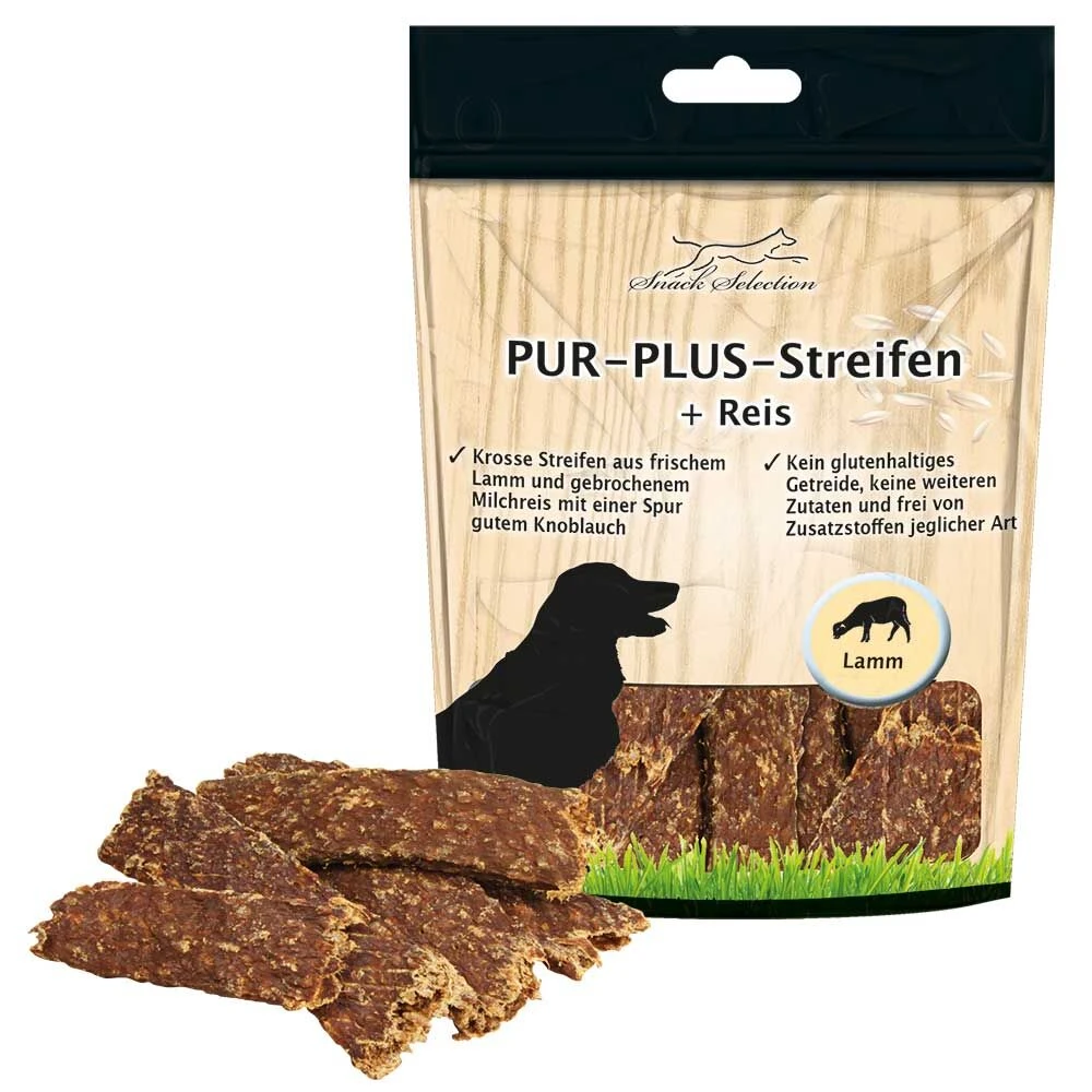 Brosse strips van vers lamsvlees en gebroken rijst met een vleugje knoflook. Snack Selection lam&rijst-strips bevatten geen glutenhoudende granen, geen andere ingrediënten en zijn vrij van toevoegingen van welke aard dan ook.