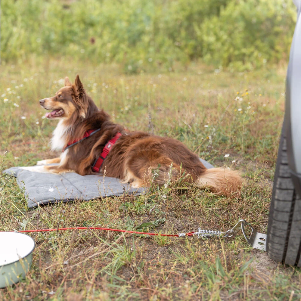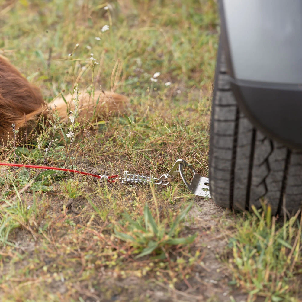 Deze oprijplaat van hoogwaardig edelstaal biedt een eenvoudige manier om uw hond veilig onderweg aan te lijnen. Laat de volgende kampeervakantie maar komen! Leg de oprijplaat gewoon voor de banden van uw auto of camper en rijdt er voorzichtig op. Het gewicht van het voertuig zorgt ervoor dat de plaat veilig en stevig tussen de banden en de grond ligt. Zo kan uw hond zich niet losrukken. Gewoon aanlijnen en klaar! Een goed alternatief voor de aanlijnpaal, want u kunt uw viervoeter ook op andere soorten ondergrond, zoals grind en asfalt en op bevroren grond, vastmaken.