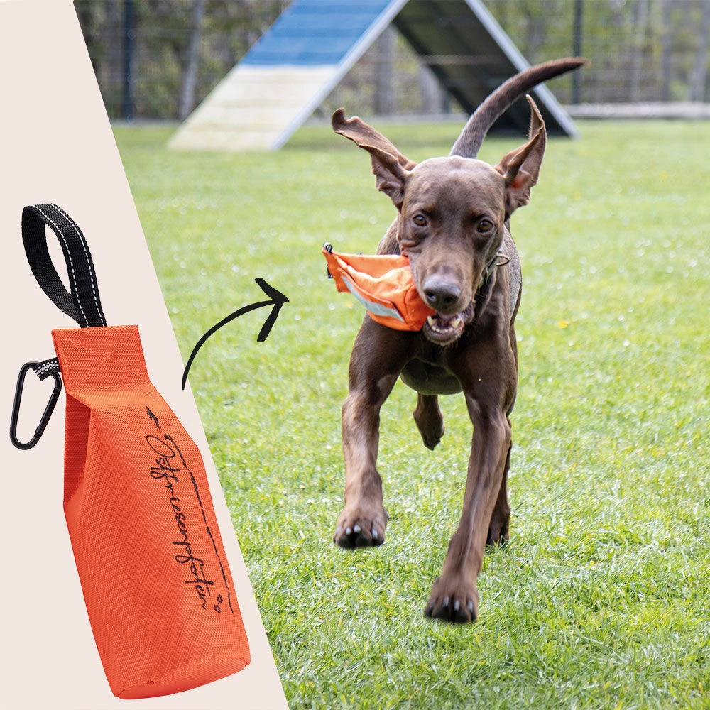 De Ostfriesenpfoten® voedingsdummy “Enno” is ideaal voor het trainen van en spelen met uw actieve hond! Deze veelzijdige voedingsdummy is dankzij de binnencoating geschikt voor alle soorten voer. Dankzij de grote, robuuste lus en het gestroomlijnde ontwerp kan de dummy ver worden gegooid en is daarom perfect voor lange speelsessies. De dummy blijft drijven en is dus ideaal voor apporteertraining in en rond het water. Of verstop de dummy om de zoekvaardigheden van uw hond op een speelse manier te stimuleren.