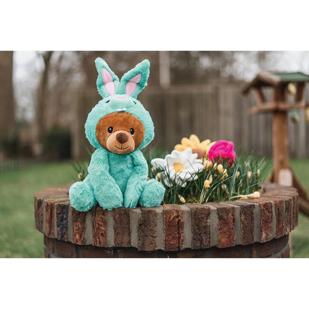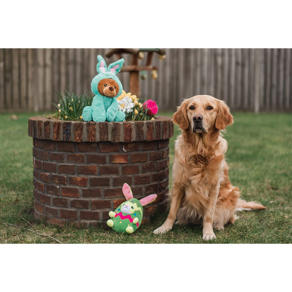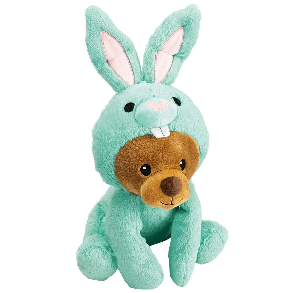 Knuffelbeer “Barry” verschuilt zich in een schattig konijnenkostuum en springt met Pasen tevoorschijn om uw hond veel speelplezier te bezorgen. Uw hond zal zich graag tegen het superzachte pluche vlijen. De lange oren en poten zijn heerlijk om mee te ravotten en te schudden. Deze paasbeer heeft geen pieper.