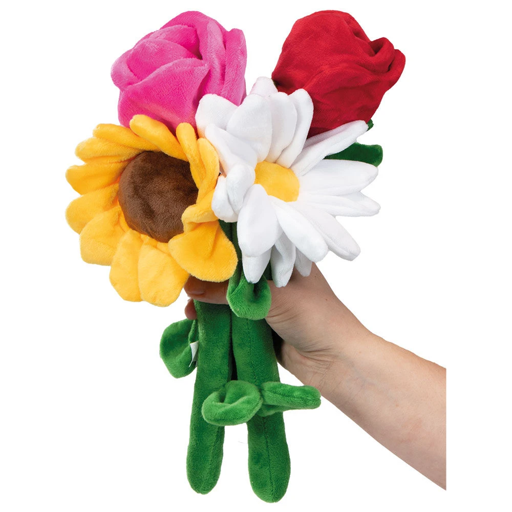 Iedereen wordt blij van een kleurrijk boeket bloemen in het voorjaar – ook uw hond zal heel blij zijn met deze mooie pluchen bloemen. Ze zijn ideaal om uitgebreid mee te spelen en te knuffelen. Dankzij de steel zijn de pluchen bloemen ideaal om te apporteren. In de bloem van de pluchen roos en de pluchen tulp kunnen ook nog eens lekkernijen worden verstopt. Alle bloemen zijn gemaakt van zacht polyester pluche met een hygiënische katoenen vulling.