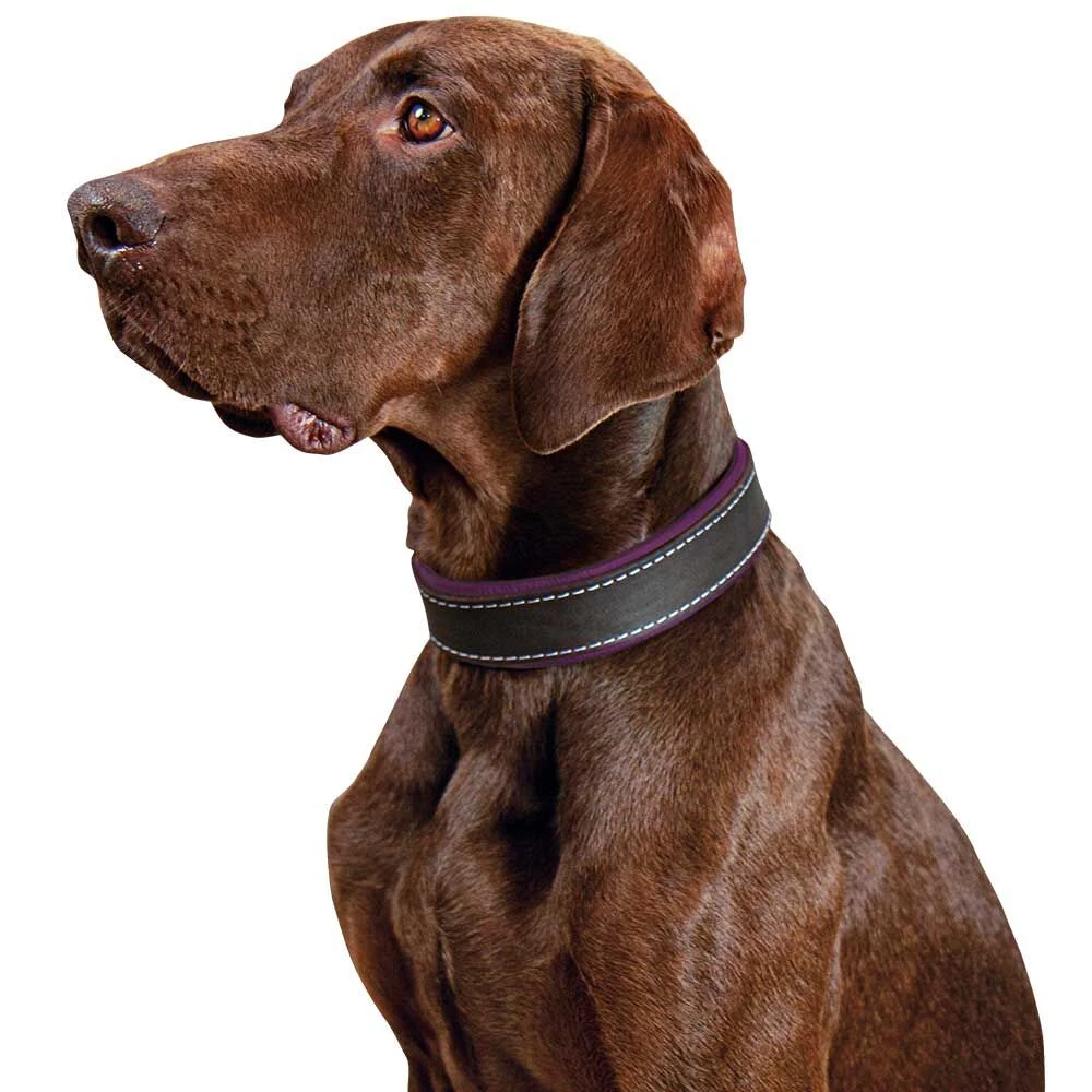 Hoogwaardige, handgemaakte hondenhalsbanden en lijnen van zacht vetleer en een uniek, gekleurd onderleer dat eruitziet als een vuurstrook onder het exclusieve moorbruine bovenleer. De mooie kleurstrepen benadrukken de schoonheid van uw hond op een esthetische, subtiele manier. De buitengewone kwaliteit van het materiaal, gecombineerd met Duits vakmanschap, creëert een duurzaam hondenaccessoire dat ongeëvenaard is.
