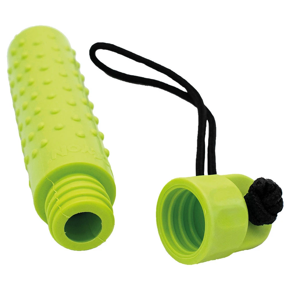 Een zachte, holle apporteerdummy met een schroefdop die gevuld kan worden met voer. (Kan ook gevuld worden met water om het apporteer/werpgewicht te verhogen (150-300 g)!)