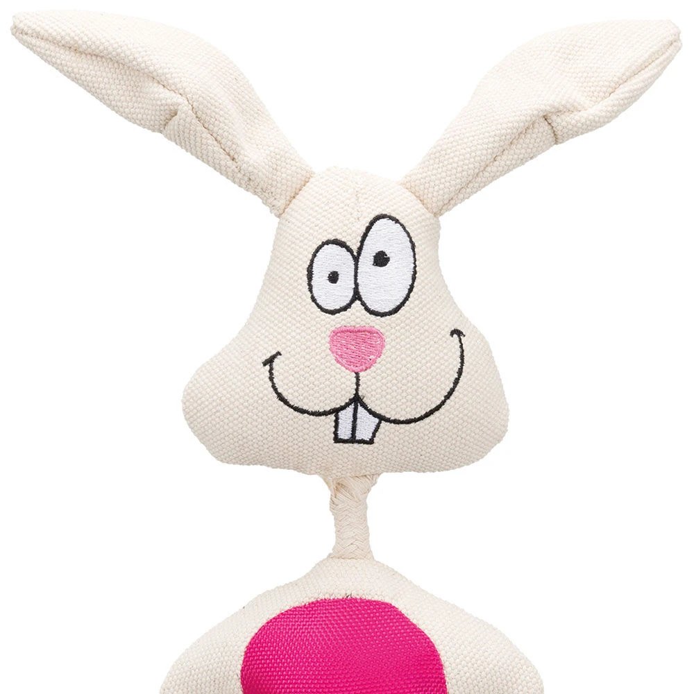 Schattige speelhaas van hygiënische polyesterstof. Leuk om rond te slingeren en mee te nemen. Ook in de tuin goed zichtbaar. Met pieper.