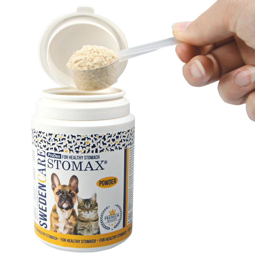 Stomax is effectief voor tal van verschillende maagproblemen bij honden. De actieve ingrediënten in Stomax zijn prebiotisch. Dit betekent dat ze de groei van nuttige bacteriën in de dikke darm ondersteunen. Dit versterkt op zijn beurt de natuurlijke afweer van het lichaam. De prebiotische functie van Stomax is gebaseerd op een vezelcomplex en op lecithine, dat het maagslijmvlies ondersteunt en de stoelgang normaliseert. De prebiotische vezels in Stomax ondersteunen de micro-organismen in de blinde darm en de dikke darm en reguleren de darmflora. Stomax zorgt vaak al binnen een dag of twee voor een significante verbetering.