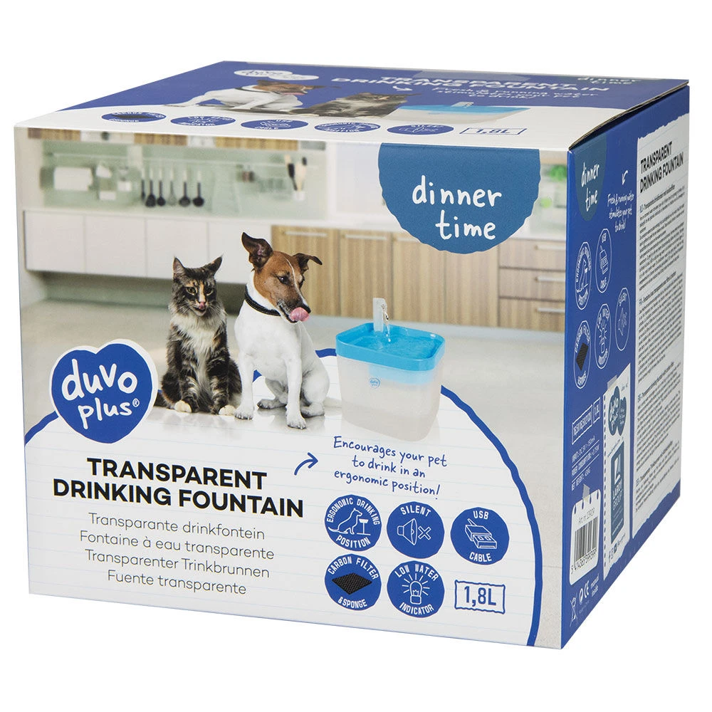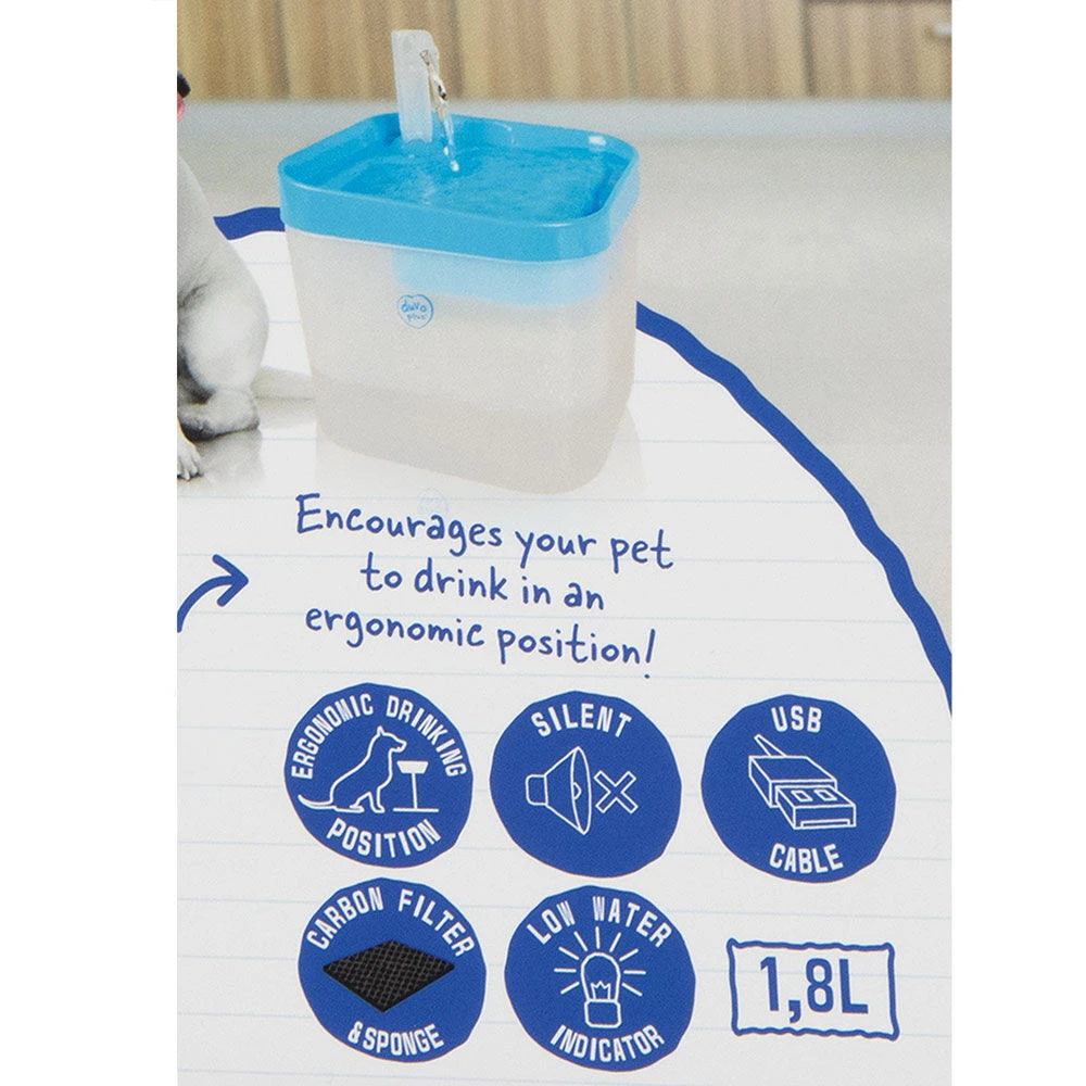 Dankzij het semitransparante reservoir (BPA-vrij) kunt u op elk moment het waterniveau controleren. Daarnaast geeft een blauwe ledlamp u te allen tijde de informatie of er genoeg water in de bak zit voor uw hond. Als de led rood is, is het waterniveau te laag. Een praktische drinkfontein met mooie details die de verzorging van uw hond wat makkelijker maken.