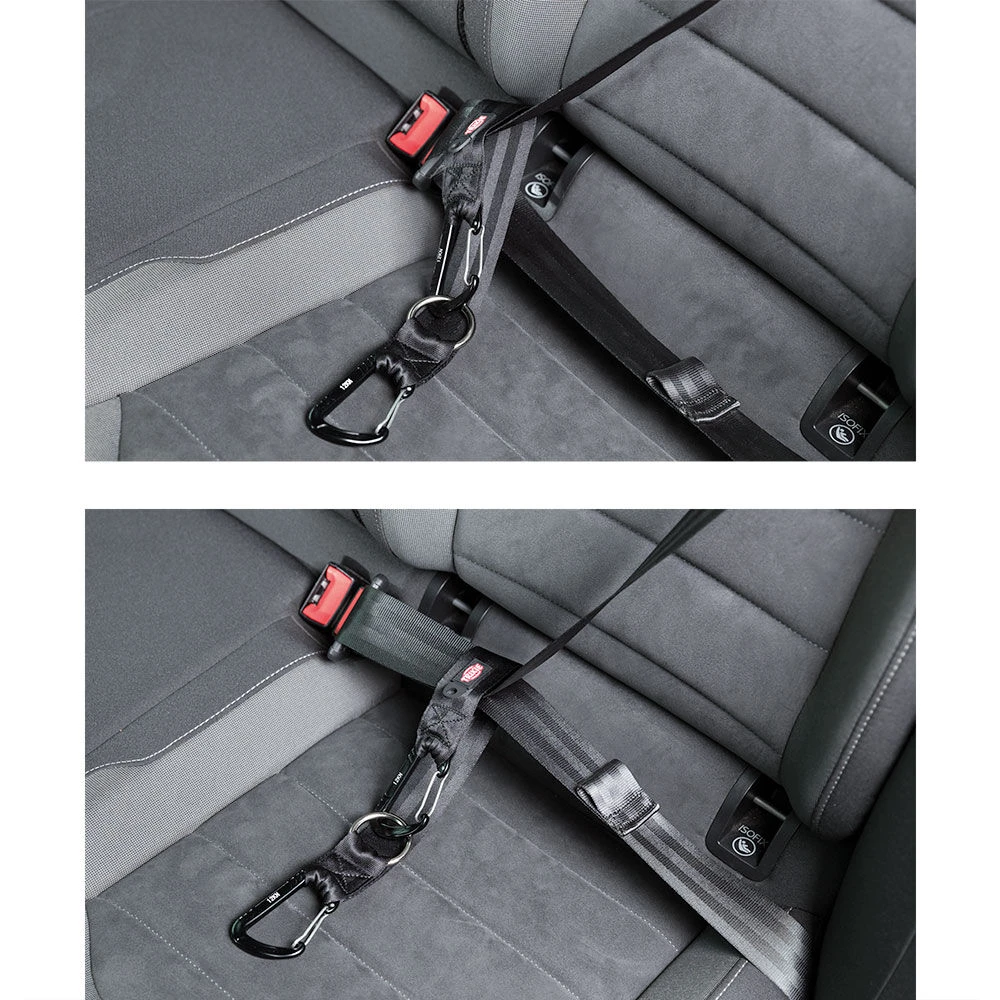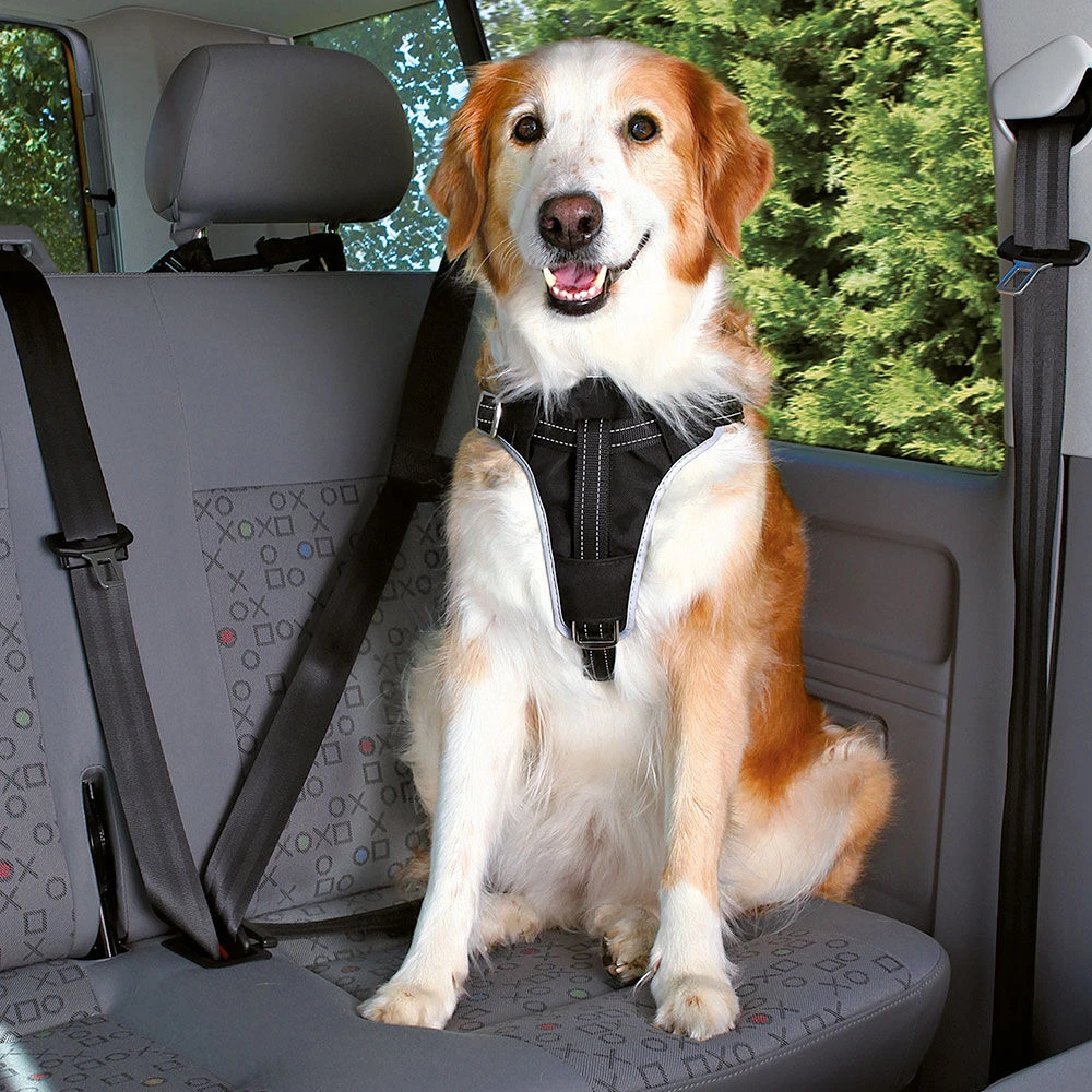 Deze veiligheidsgordel is de complete veiligheidsuitrusting voor uw hond in de auto. De gordel voorkomt dat de hond tijdens de rit ongecontroleerd door de auto gaat drentelen. Hiermee kan de hond ook niet uit een geopend raam springen. Geschikt voor alle auto’s. Zeer eenvoudig en snel te gebruiken: de lus van de gordel wordt gewoon om het bestaande, vastgeklikte autogordelsysteem gelegd. Het hondentuigje kan langdurig gedragen worden. Ook in bus en trein te gebruiken. Met zacht verdikte borstriem en nylonriemen. Stevig metalen beslag en reflex-naden. De genoemde rassen zijn slechts een voorbeeld voor de grootten!