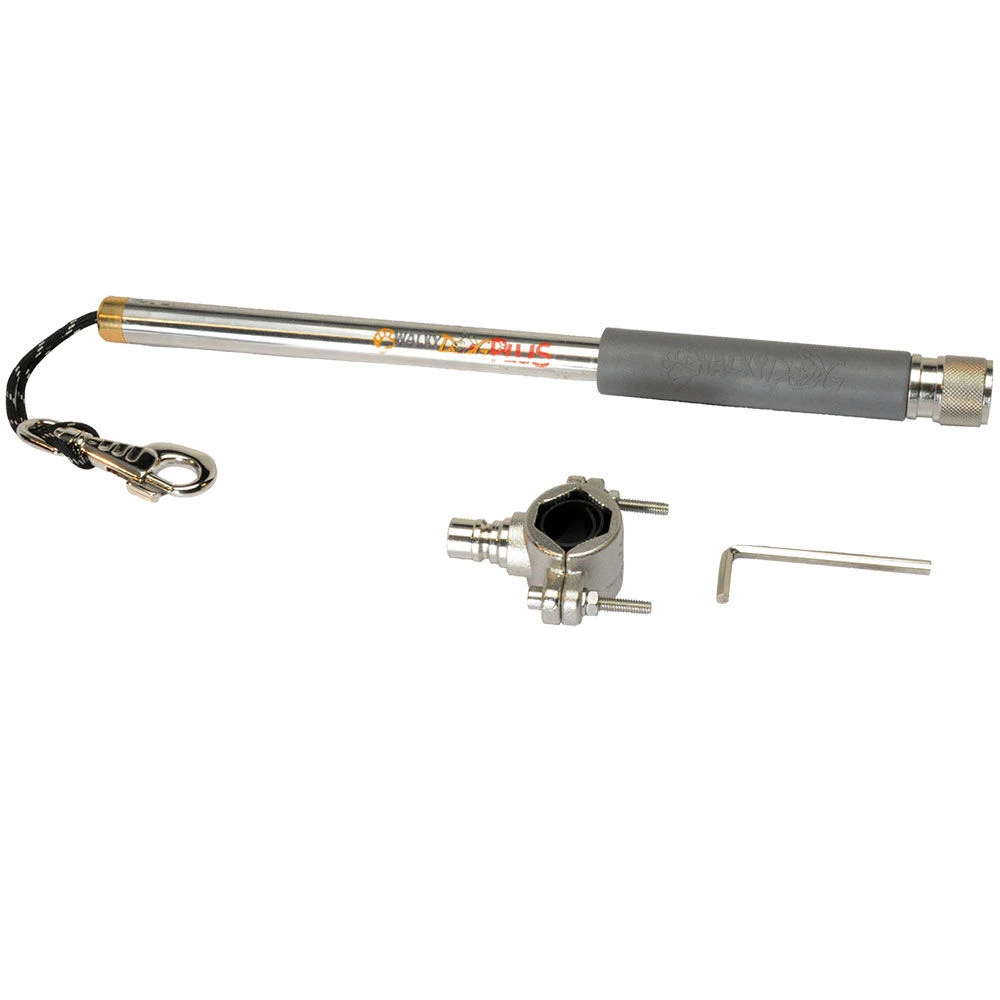 Zo wordt het fietsen met de hond nog veiliger. Want met onze Walky-Dog Plus fietshouder heeft het baasje beide handen aan het stuur. Walky-Dog Plus bestaat uit een metalen afstandhouder, die met zijn patentsluiting – en dat is de clou – in slechts enkele seconden van de fiets losgemaakt en als riem gebruikt kan worden. Zo hebt u uw hond direct onder controle, als u de fiets neerzet.