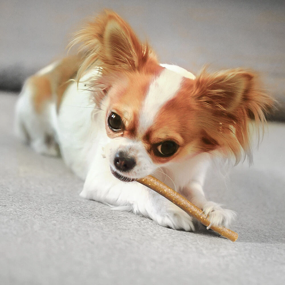 Met de keuze van dit superlekkere kauwplezier zal uw viervoeter gegarandeerd helemaal achter u staan. Want onze gevogeltestangen zijn soft van beet en heerlijk van smaak! Een reuzegenot voor knabbelgrage honden, die geen zin hebben hun tanden kapot te bijten op ‘bikkelharde’ snacks.